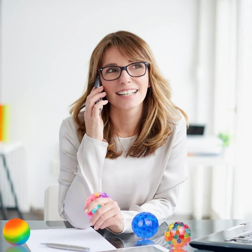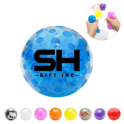 A clear thermal plastic rubber ball filled with colorful gel-filled beads. The beads inside provide a massage-like feel when squeezed, and the ball returns to its original shape when released. These stress-relief sensory toys are hypoallergenic, non-toxic, and free of phthalates and latex. Strong, durable, and safe, these stress balls are great for both kids and adults. They can be customized with a logo or company name, making them ideal for promotional use.